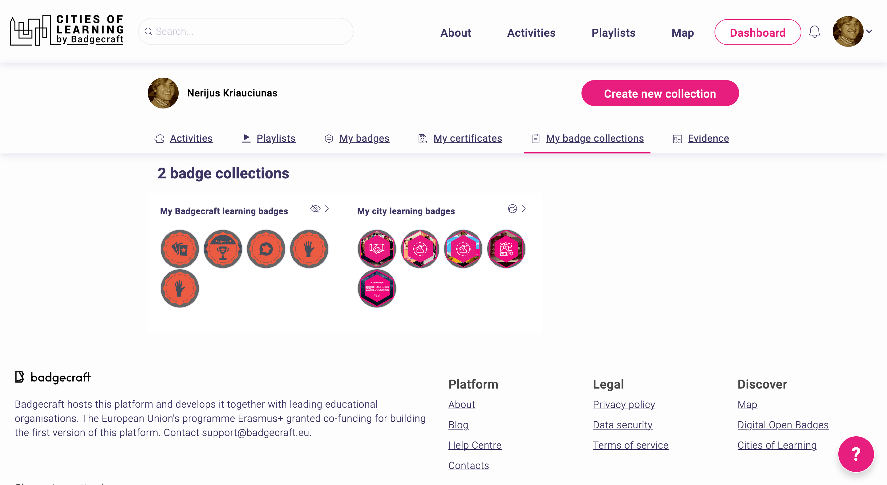 2. Click on the Create new collection button (My Badge Collections -> Create new collection).